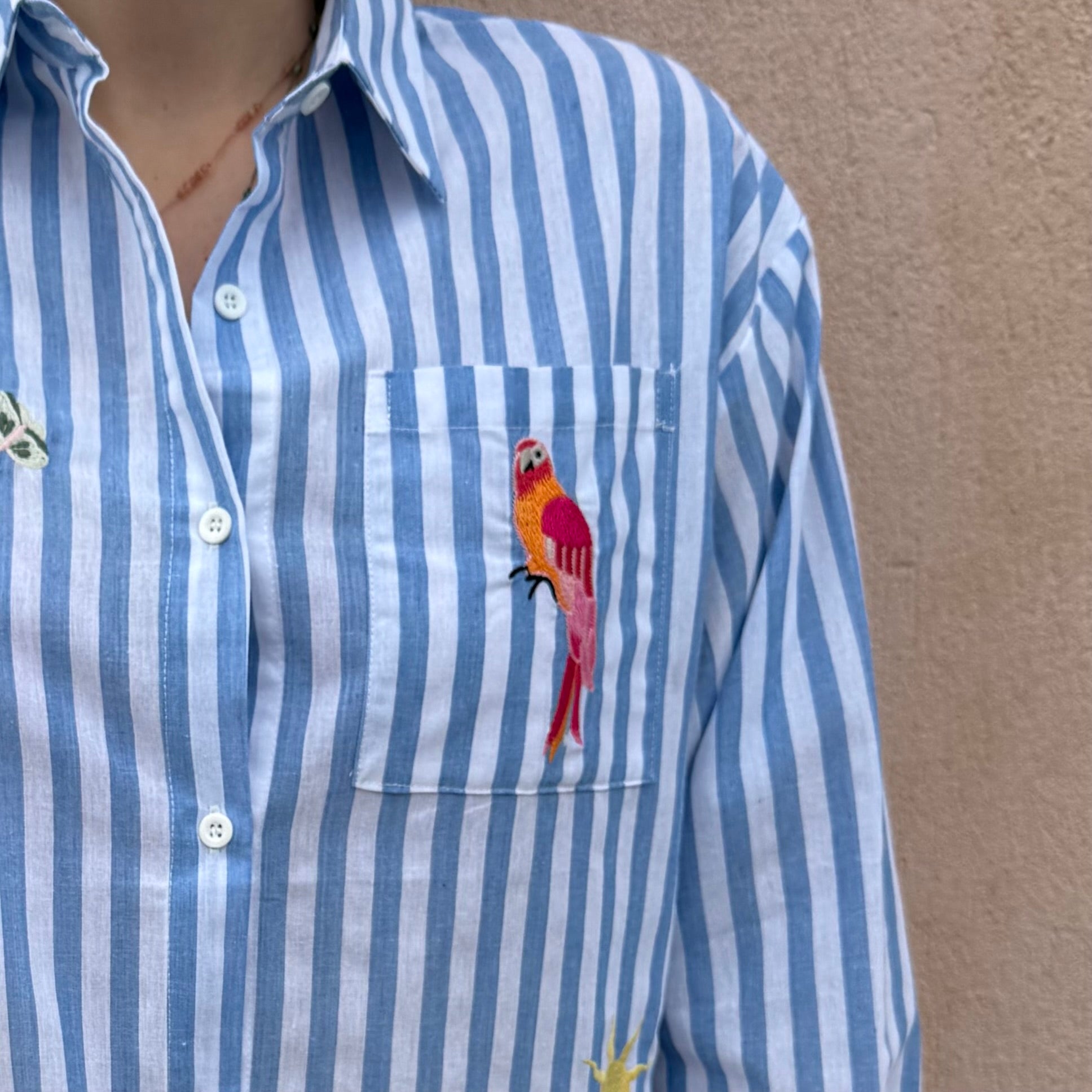 Chemise brodée bleue