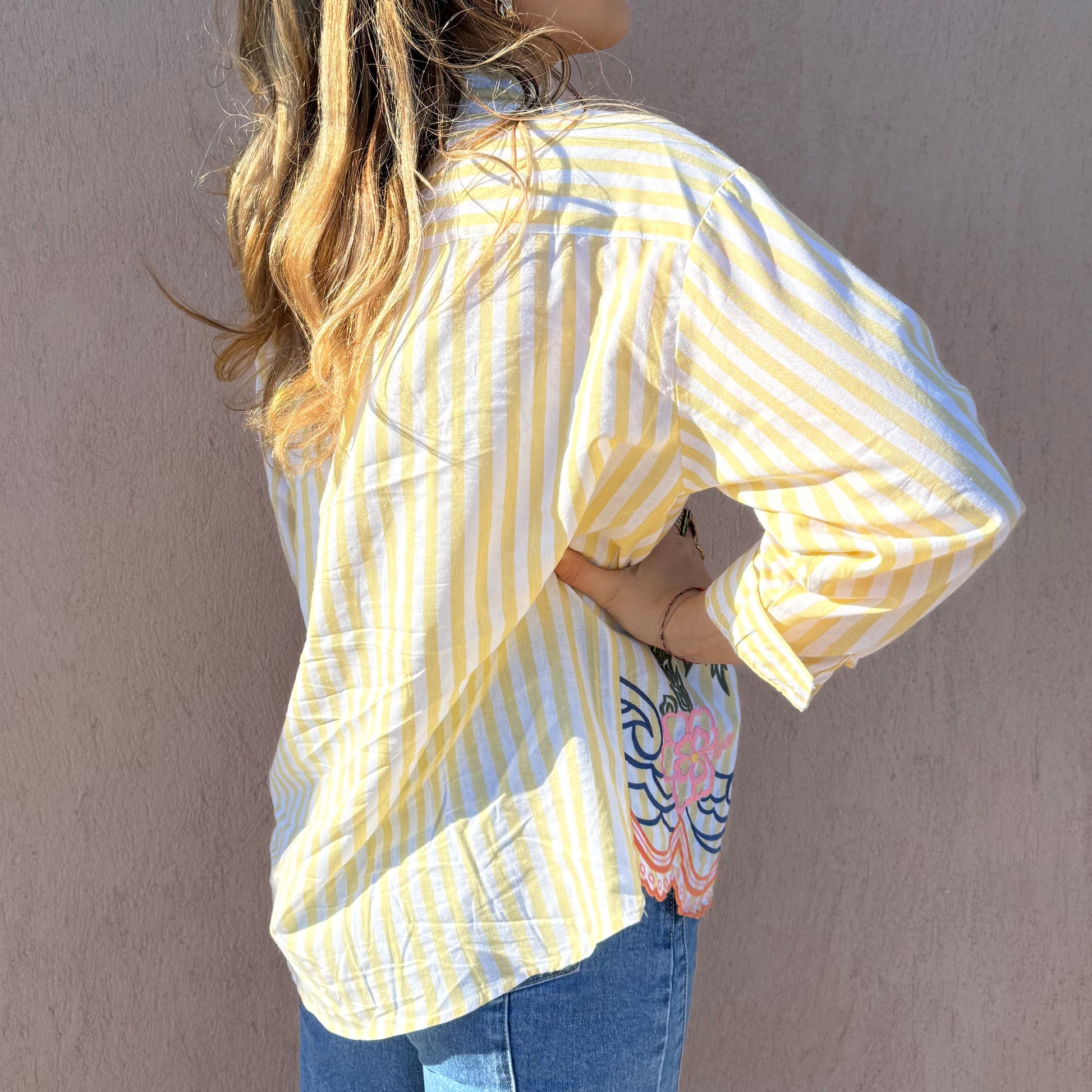 - Chemise jaune à rayures blanches