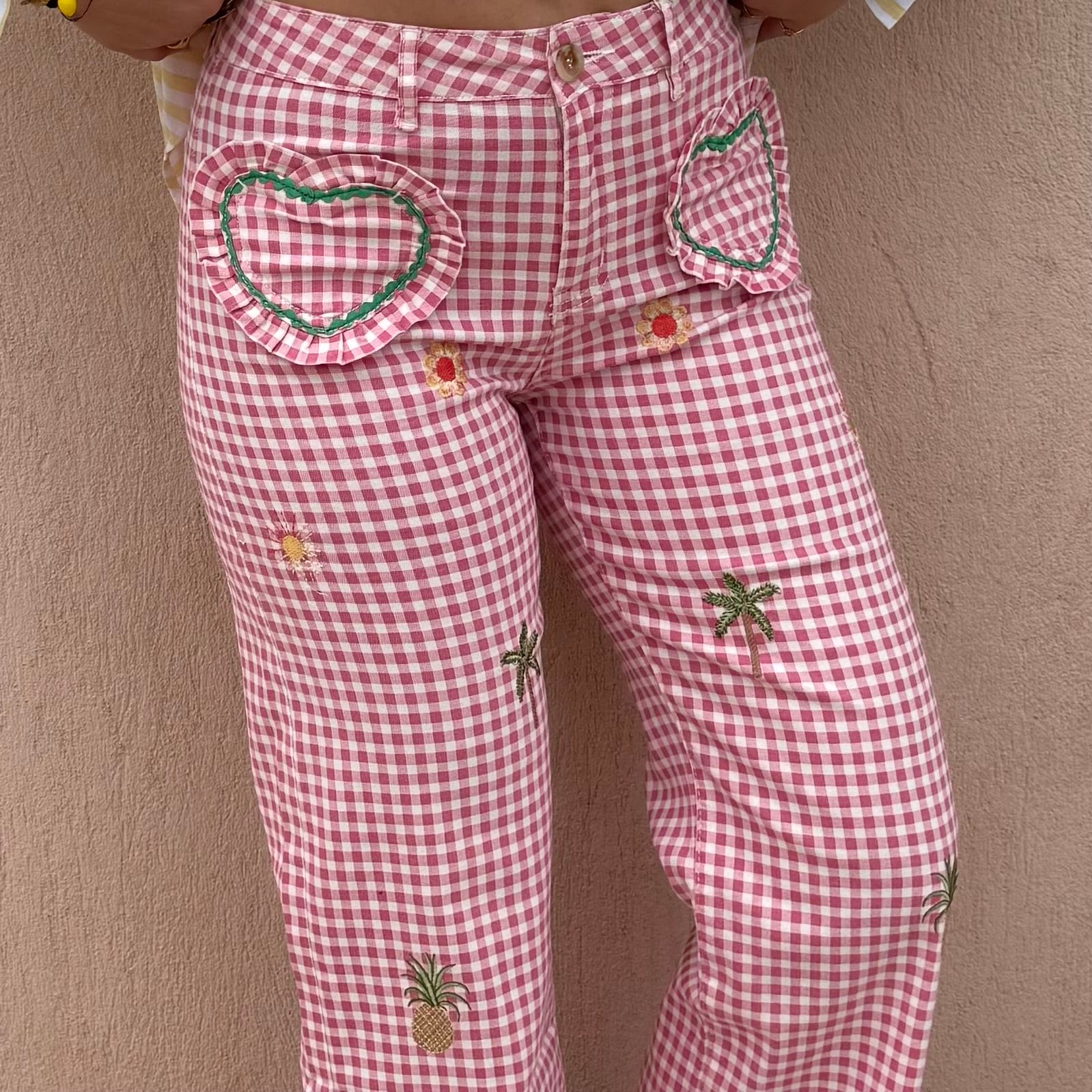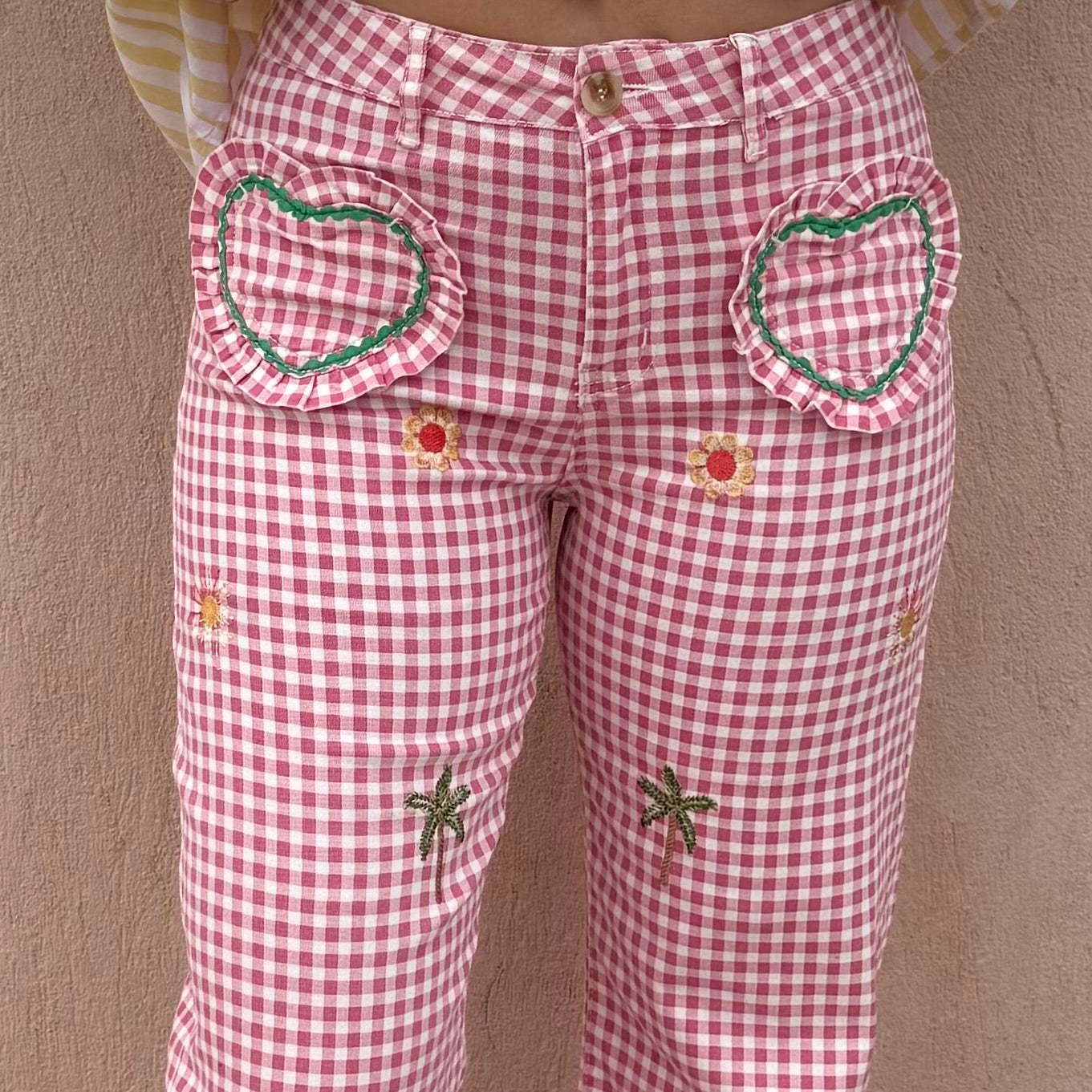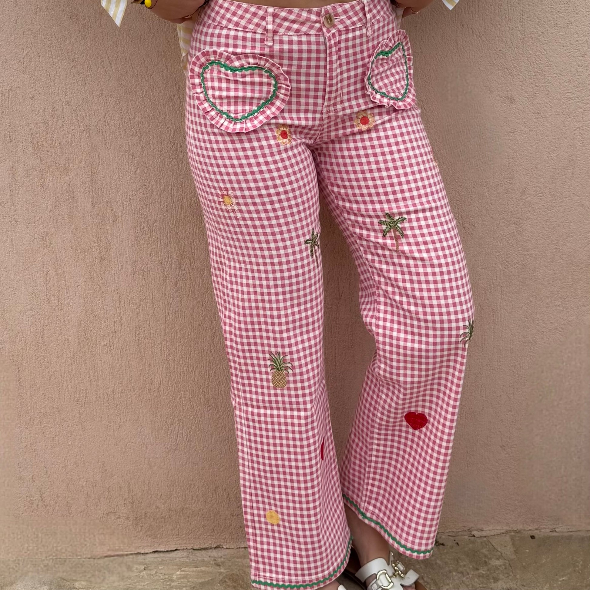 - Jean imprimé vichy rose